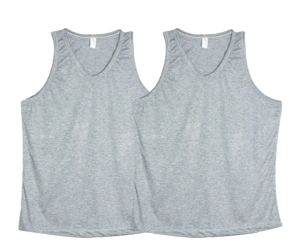 Musculosa para adulto de poliéster melange en blanco, lista para personalizar mediante sublimación. Perfecta para eventos, promociones y uso diario.
